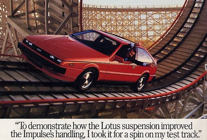 Nothing says ‘precision Lotus handling’ like blasting through a rollercoaster like you’re late for the 3 PM matinee of Knight Rider. Somewhere, an insurance agent just fainted.