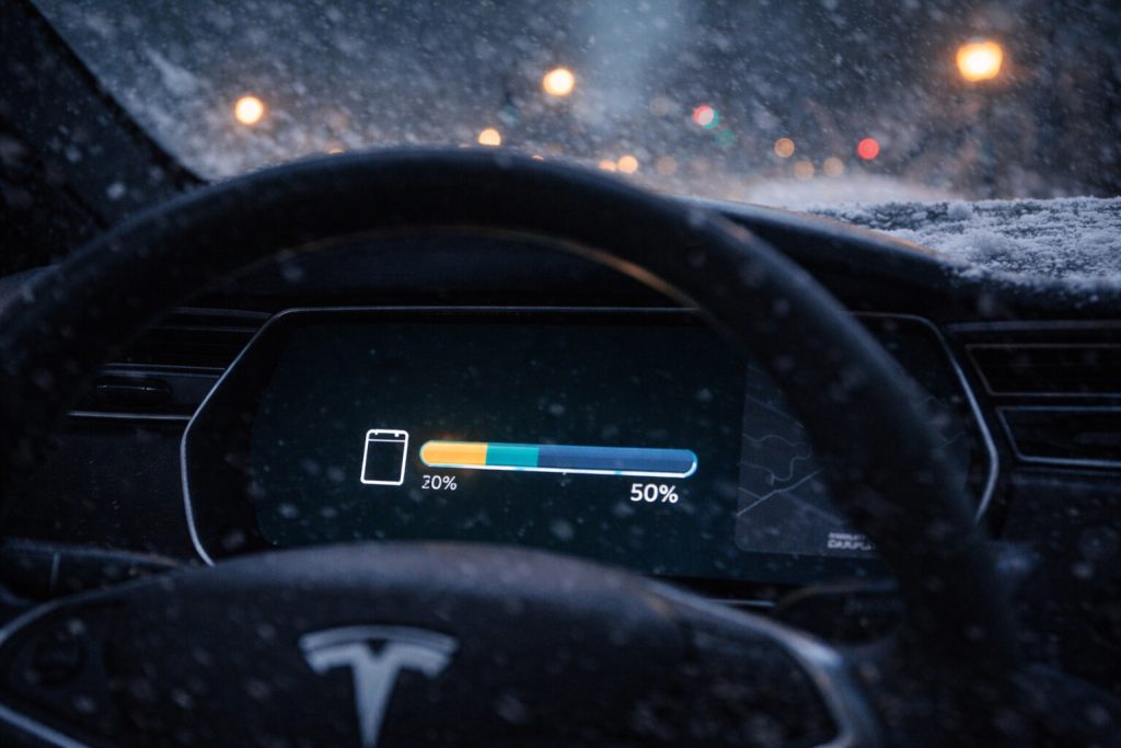 Do not allow the battery to drop below 20% in winter. Low temperatures slow chemical reactions inside lithium-ion cells, reducing usable capacity and increasing charging time. EVs also consume energy to warm the battery before driving, which further reduces available range if the charge level is already low.